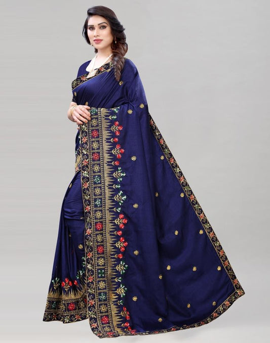 Navy Blue Coloured Poly Silk Embroidered Saree