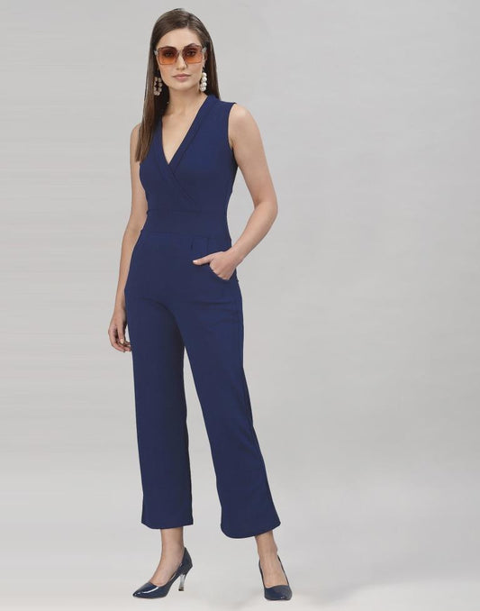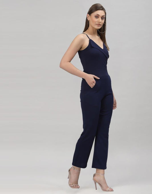 Navy Blue Coloured Lycra Plain Jumpsuit