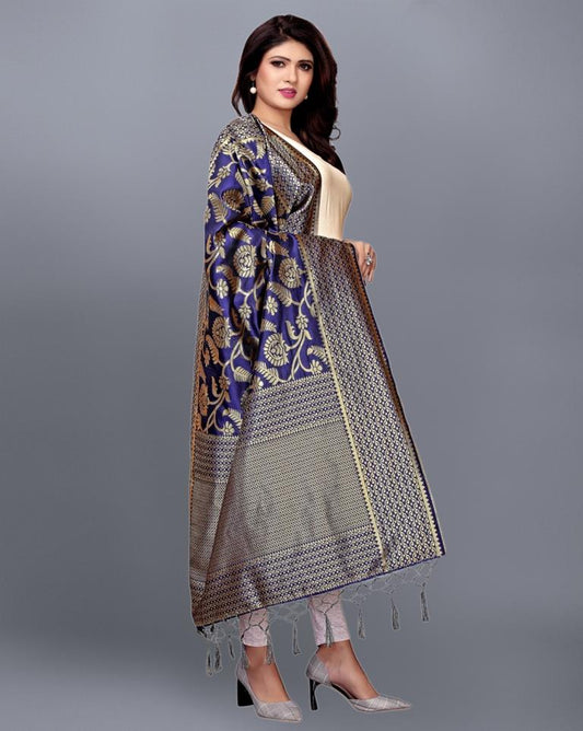 Navy Blue Coloured Poly Silk Jacqaurd Dupatta