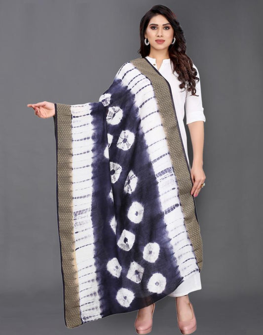 Navy Blue Coloured Poly Cotton Bandhani Printed Dupatta