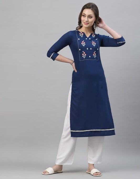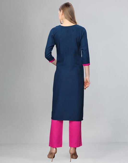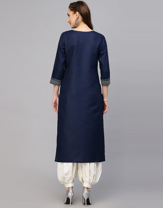Navy Blue Embroidery Kurti With Pant And Dupatta