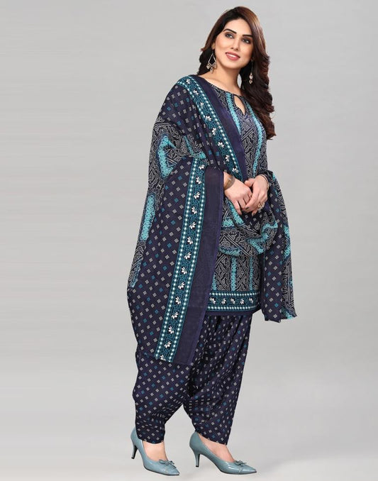Navy Blue Printed Cotton Unstitched Salwar Suit Material