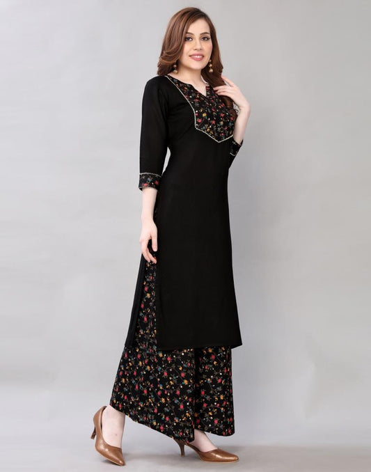Black Coloured Rayon Foil With Pigment Work Kurti With Palazzo