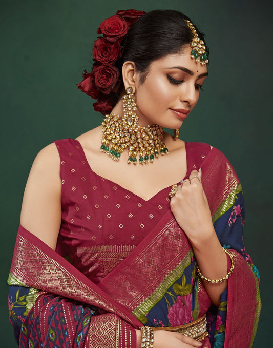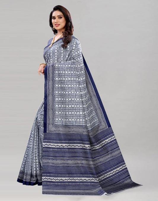 Regular price Rs. 1,249.00Regular priceUnit price / perRs. 0.00Sale price Rs. 1,249.00Navy Blue Printed Silk A-Line Kurta Set With Dupatta
