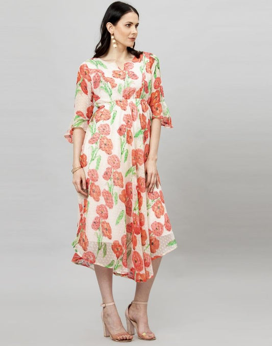 Regular price Rs. 829.00Regular priceUnit price / perRs. 0.00Sale price Rs. 829.00Off White Coloured Printed Chiffon Dress