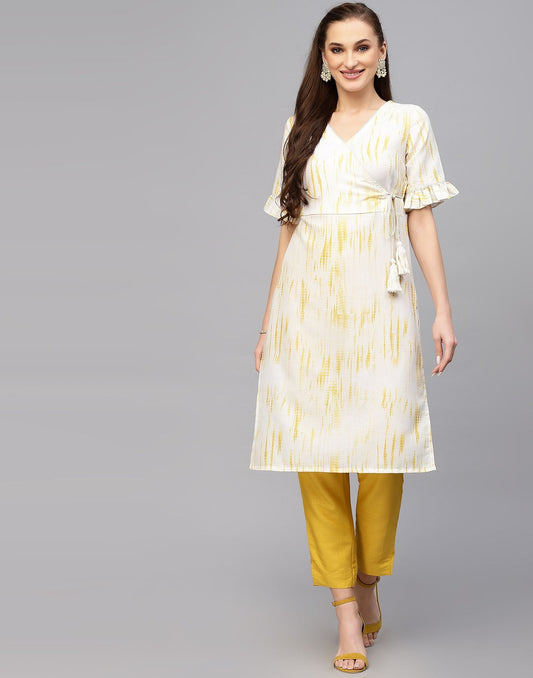 Off White Coloured Cotton Flex Foil Printed Kurti With Palazzo