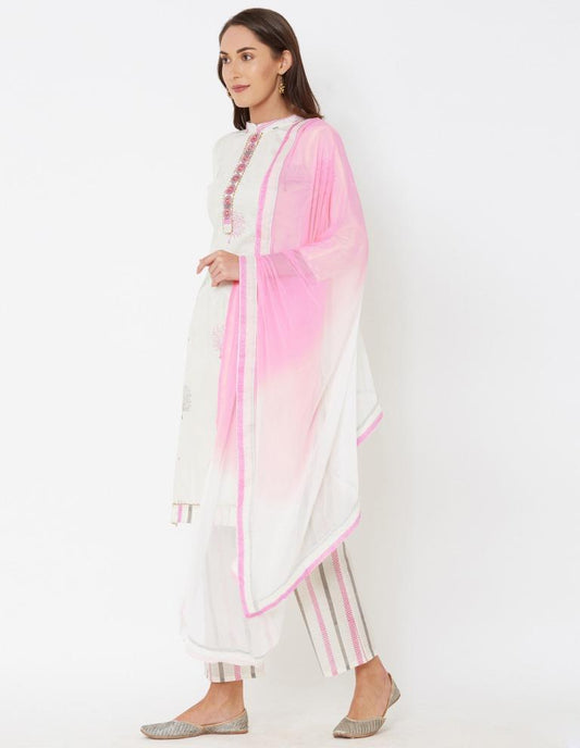 Off White Coloured Cotton Flex Printed Kurti With Palazzo