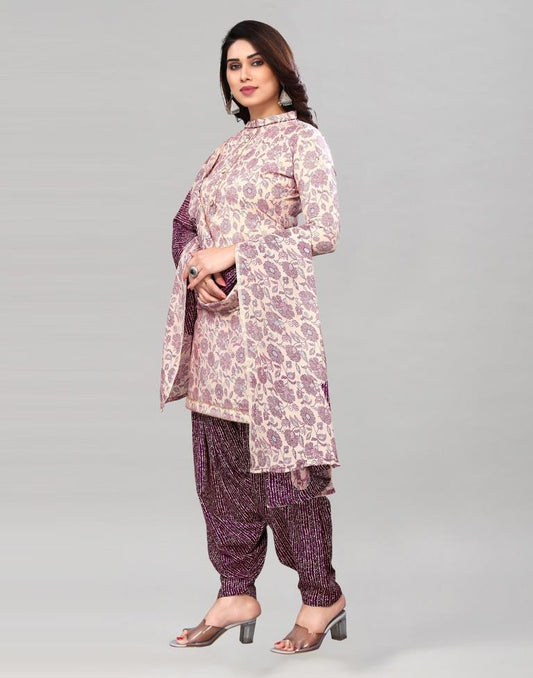 Off White Printed Cotton Unstitched Salwar Suit Material