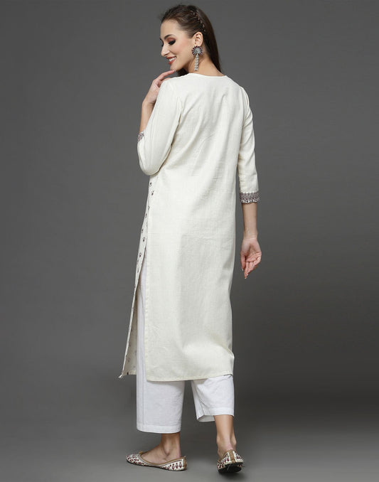 Regular price Rs. 639.00Regular priceUnit price / perRs. 0.00Sale price Rs. 639.00Off White Plain Cotton A-Line Kurta