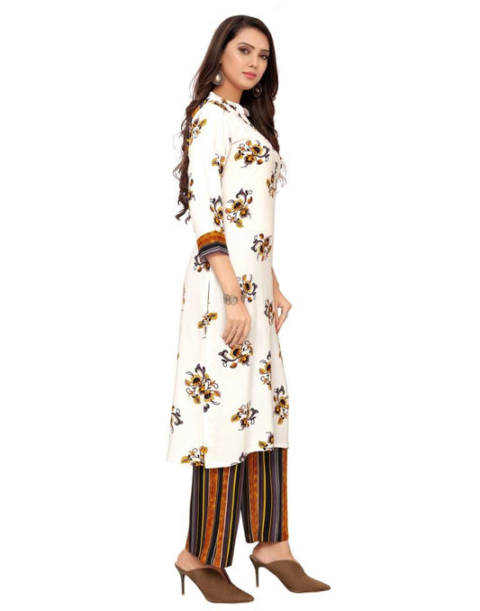 Off White Printed Kurta With Pant