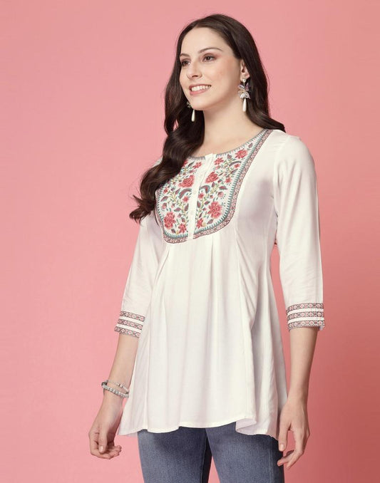 Off White Rayon Plain Top