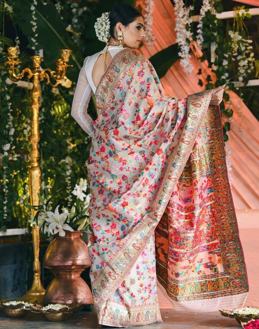 Off White Silk Kashmiri Saree