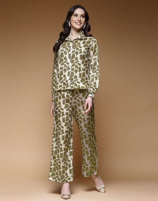 Off White Satin Printed Co-ords Set