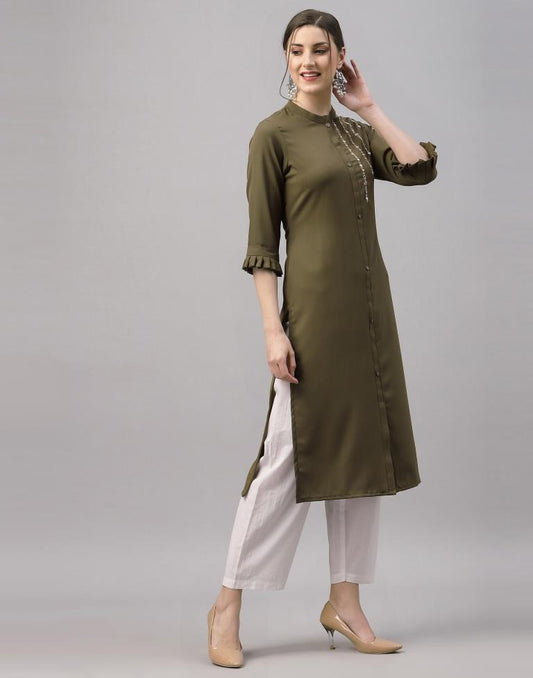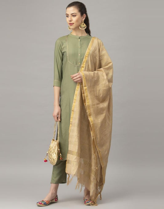 Olive Green Gota Patti Kurti with Pant And Dupatta