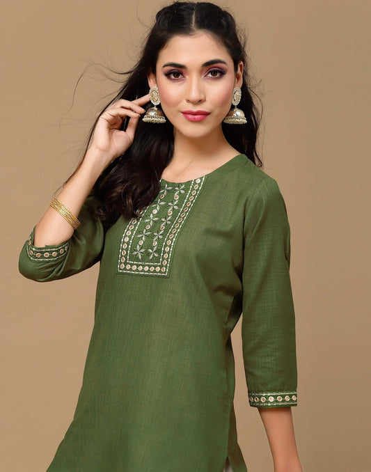 Regular price Rs. 509.00Regular priceUnit price / perRs. 0.00Sale price Rs. 509.00Olive Green Embroidery Cotton Straight Kurta