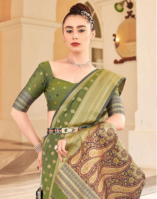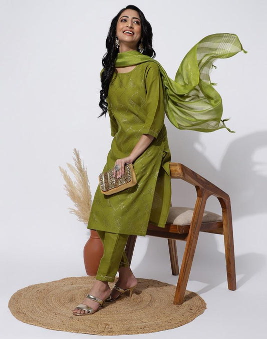 Olive Green Printed Straight Kurti With Pant And Dupatta