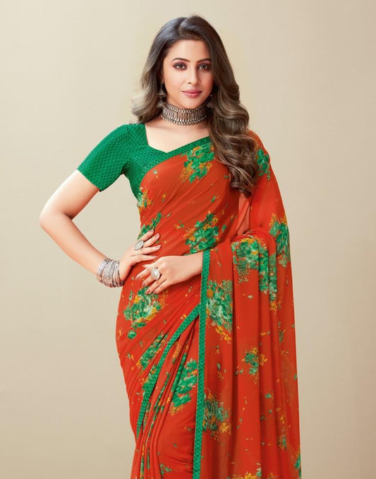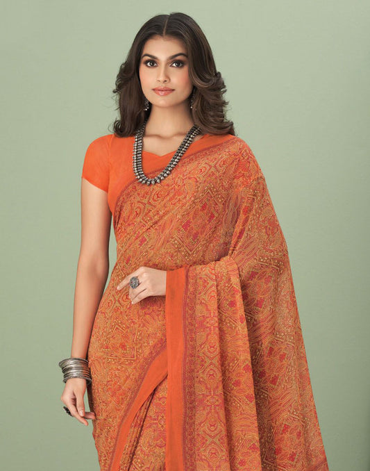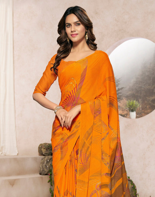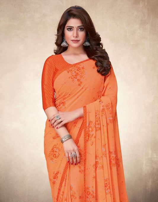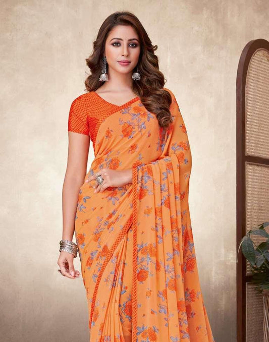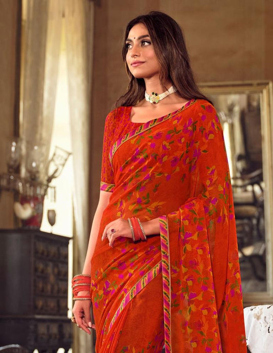 Orange Georgette Printed Saree