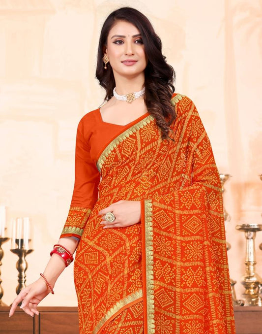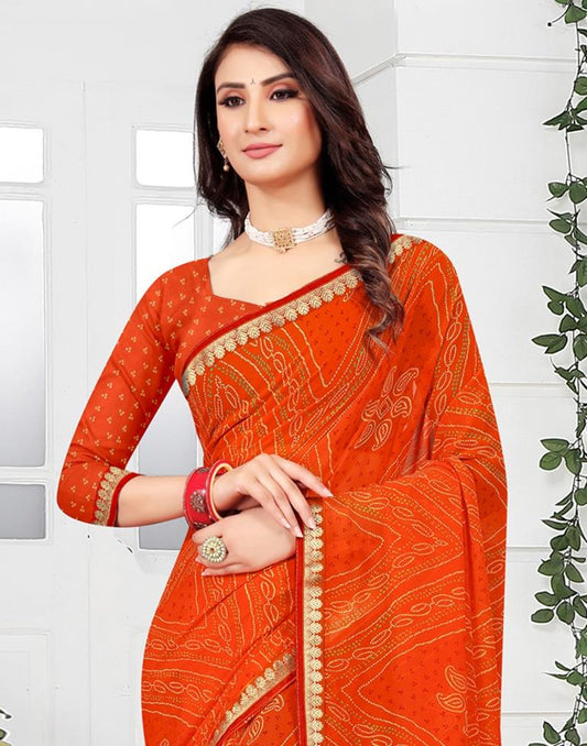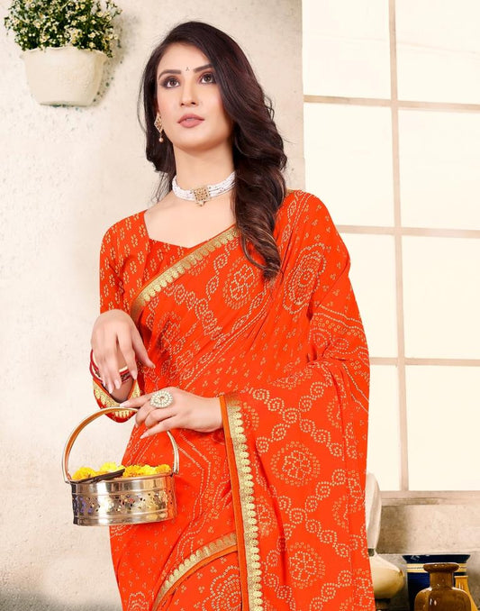 Orange Georgette Bandhani Printed Saree