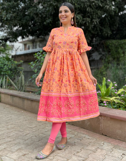 Orange Flared Kurti
