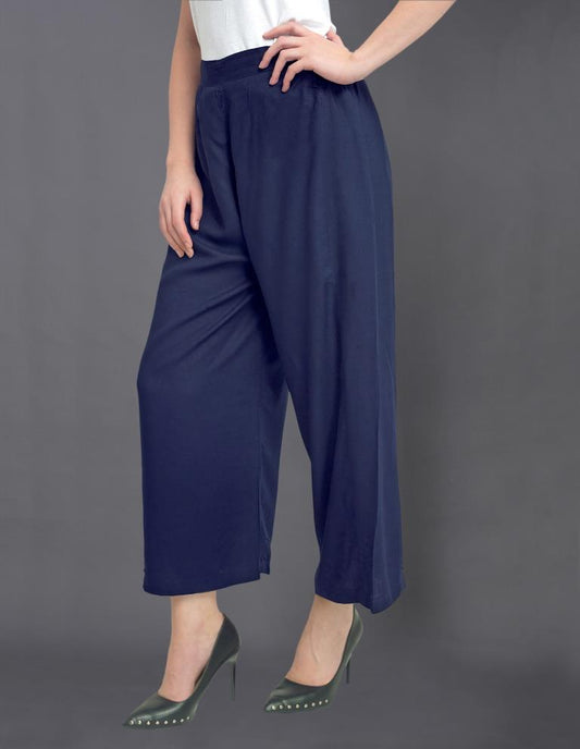 Outstanding Navy Blue Coloured Dyed Rayon Palazzo