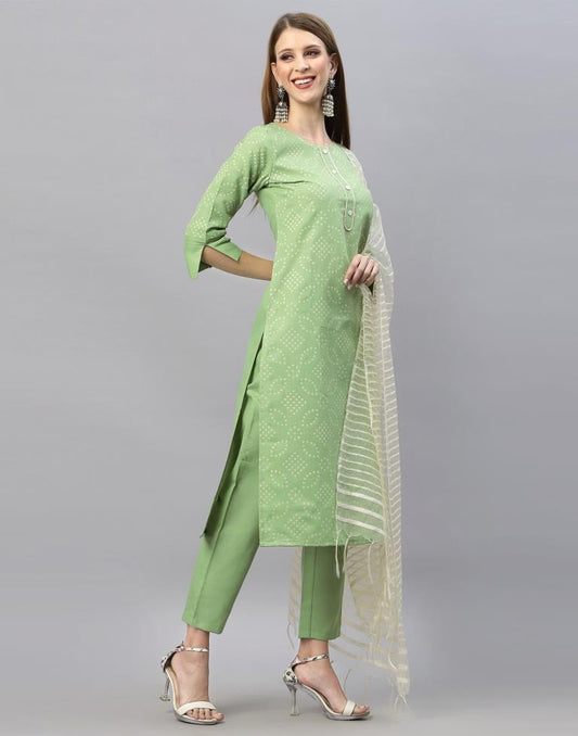 Pastel Green Kurti With Pant And Dupatta