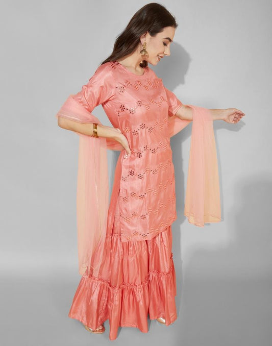 Pastel Orange Kurti With Pant And Dupatta