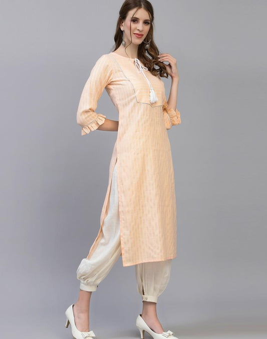 Pastel Peach Solid Kurti