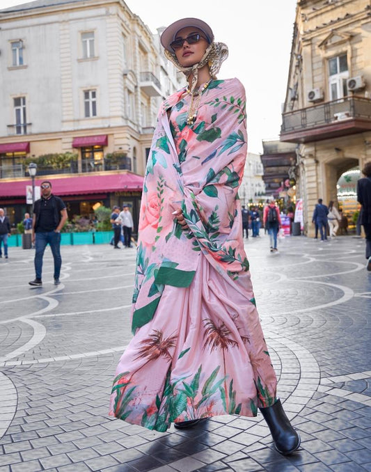 Pastel Pink Printed Silk Saree