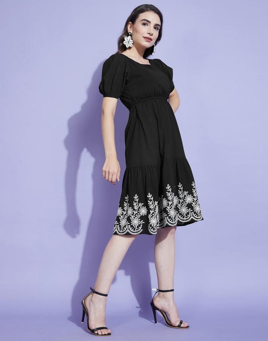 Regular price Rs. 539.00Regular priceUnit price / perRs. 0.00Sale price Rs. 539.00Black Embroidered A-line Dress
