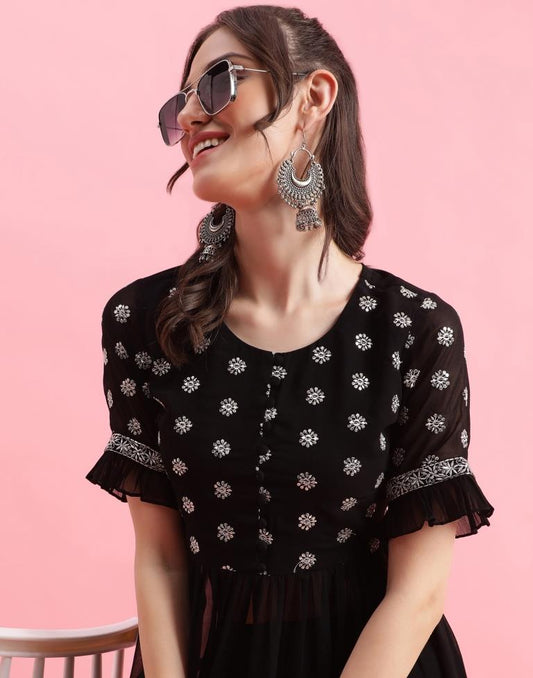 Regular price Rs. 549.00Regular priceUnit price / perRs. 0.00Sale price Rs. 549.00Black Embroidered A-Line Kurta