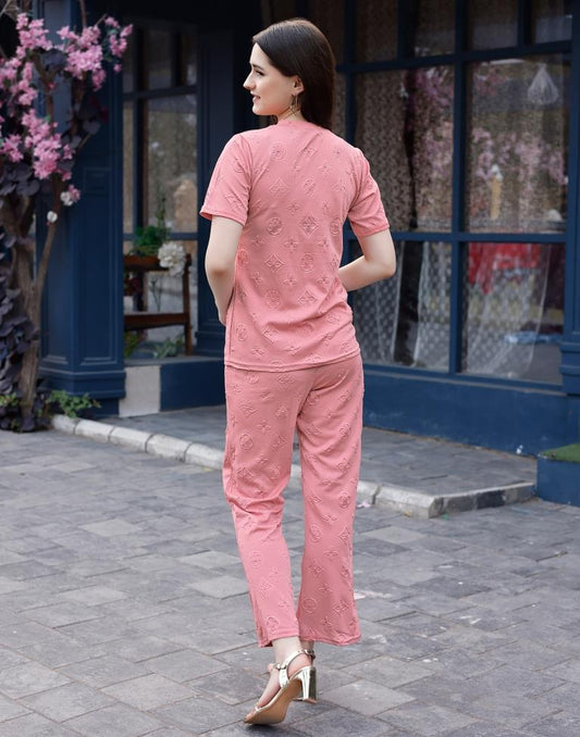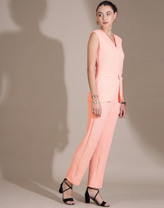 Regular price Rs. 849.00Regular priceUnit price / perRs. 0.00Sale price Rs. 849.00Peach Lycra Knitted Co-ords Set
