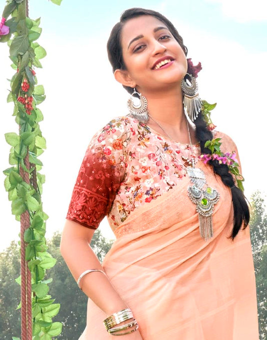 Peach Pink Coloured Poly Cotton Printed Casual saree