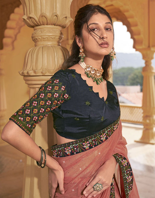 Peach Pink Coloured Cotton Silk Jacquard Partywear saree