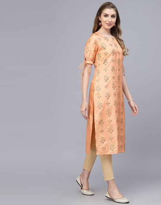 Peach Printed Silk Straight Kurta