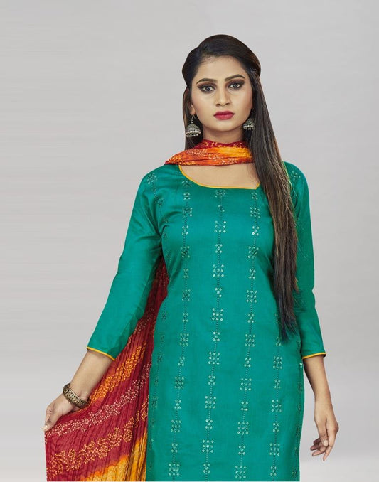 Pine Green Cotton Embroidered Unstitched Salwar Suit
