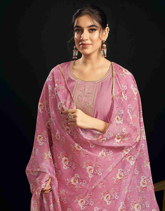 Regular price Rs. 1,369.00Regular priceUnit price / perRs. 0.00Sale price Rs. 1,369.00Pink Chanderi Embroidery Straight Kurta Set With Dupatta