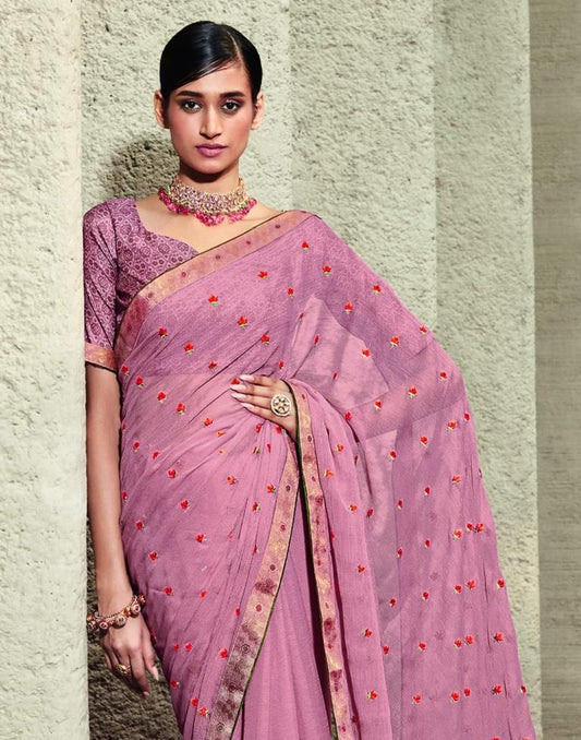 Pink Chiffon Embroidery Saree