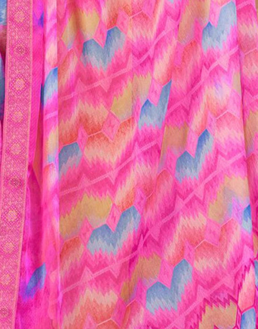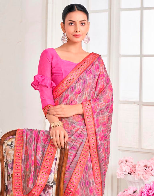 Pink Chiffon Printed Saree