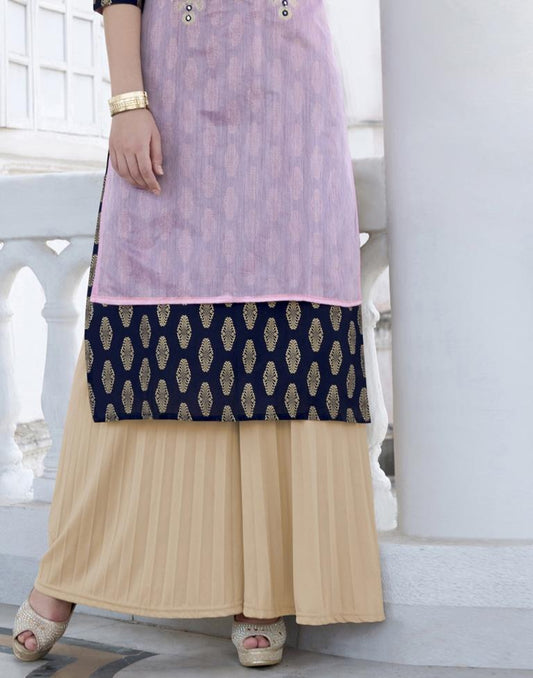 Pink Coloured Cotton Woven Kurti With Palazzo