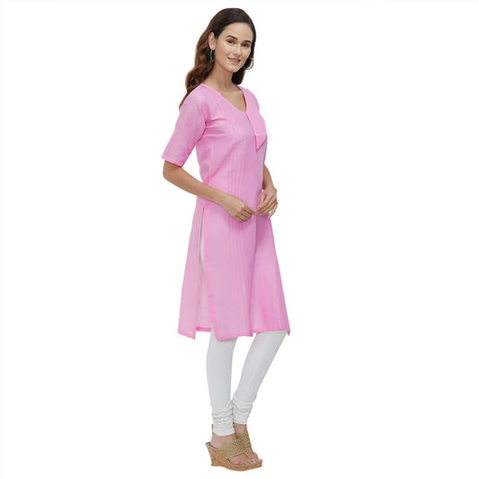 Pink Coloured Dyed Cotton Slub Kurti
