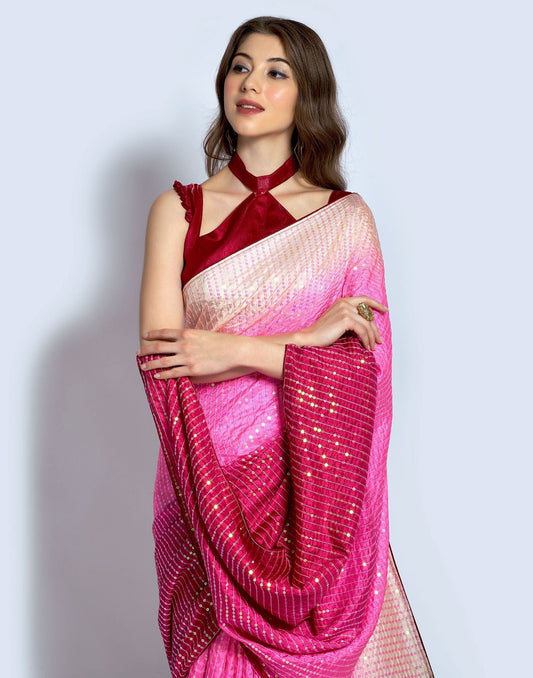 Regular price Rs. 1,089.00Regular priceUnit price / perRs. 0.00Sale price Rs. 1,089.00Pink Embroidered Chinnon Kurta Set With Dupatta