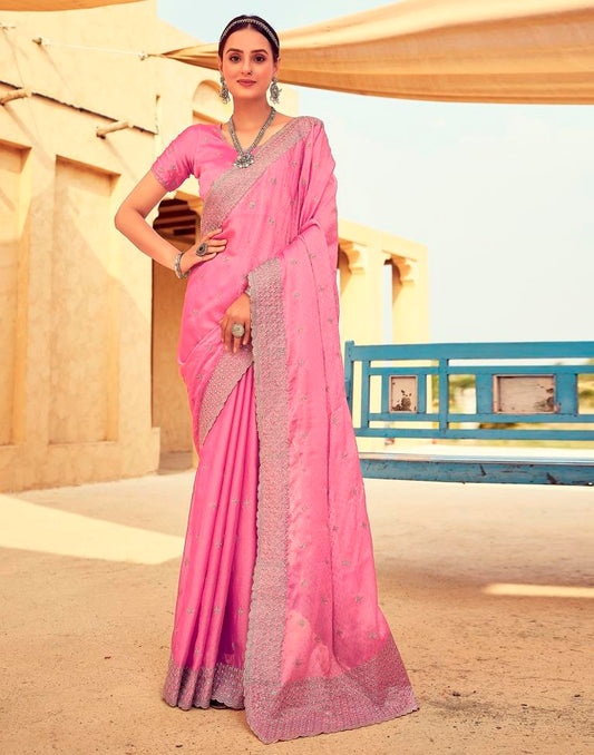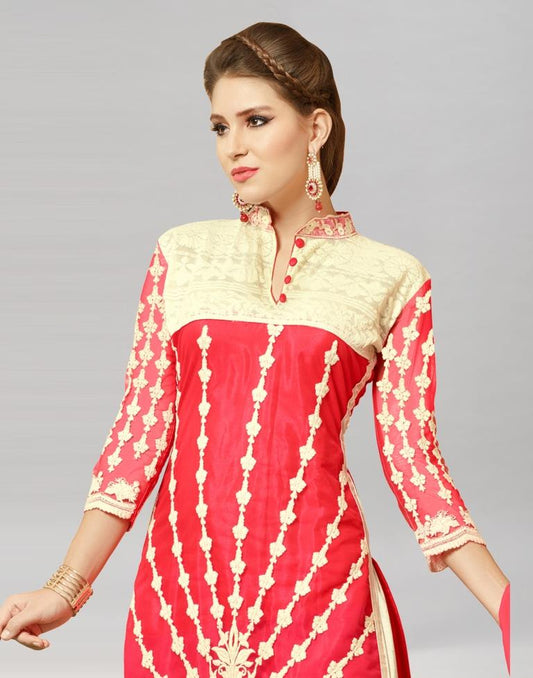 Pink Georgette Embroidered Unstitched Salwar Suit
