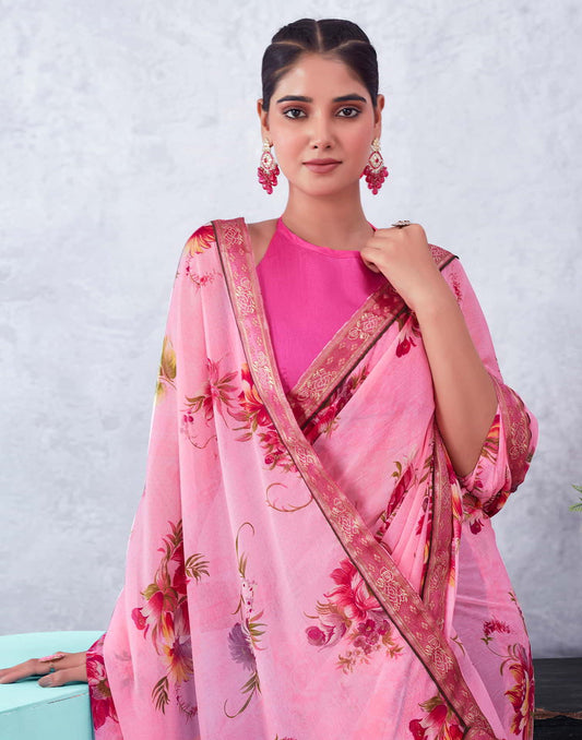 Regular price Rs. 619.00Regular priceUnit price / perRs. 0.00Sale price Rs. 619.00Pink Printed Chinnon Flared Kurta