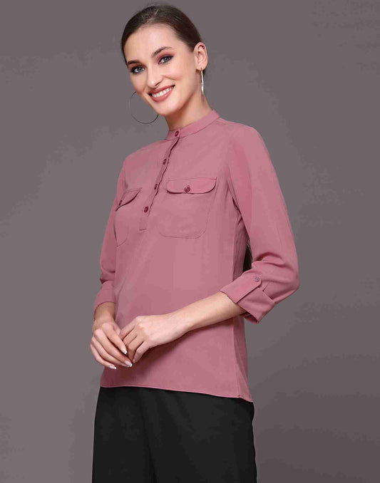 Regular price Rs. 439.00Regular priceUnit price / perRs. 0.00Sale price Rs. 439.00Pink Polyester Plain Shirt