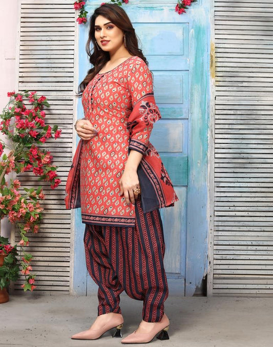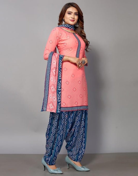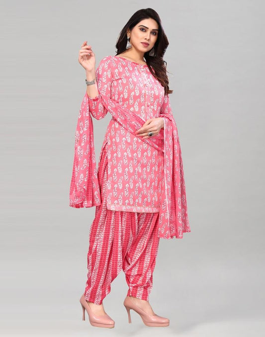 Pink Printed Cotton Unstitched Salwar Suit Material