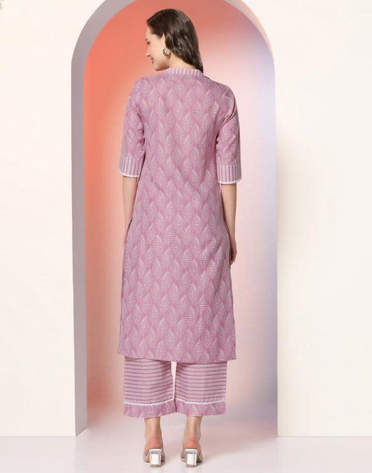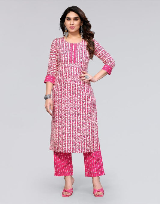 Pink Printed Cotton Straight Kurta Set with Dupatta