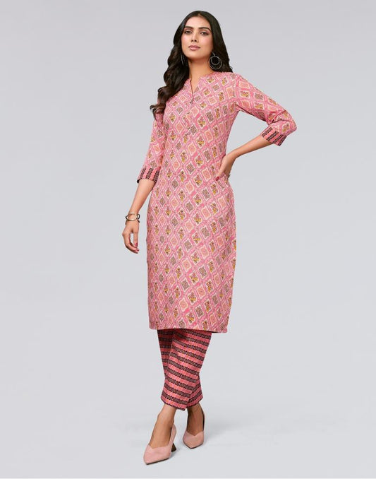 Regular price Rs. 649.00Regular priceUnit price / perRs. 0.00Sale price Rs. 649.00Pink Printed Cotton Straight Kurta With Pant