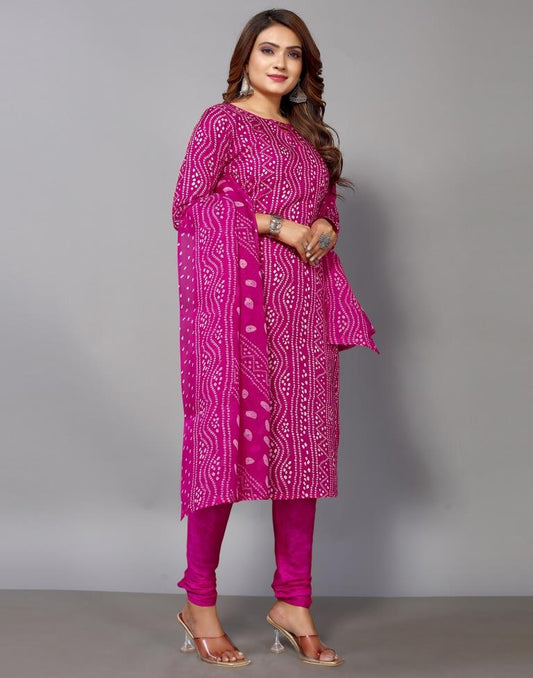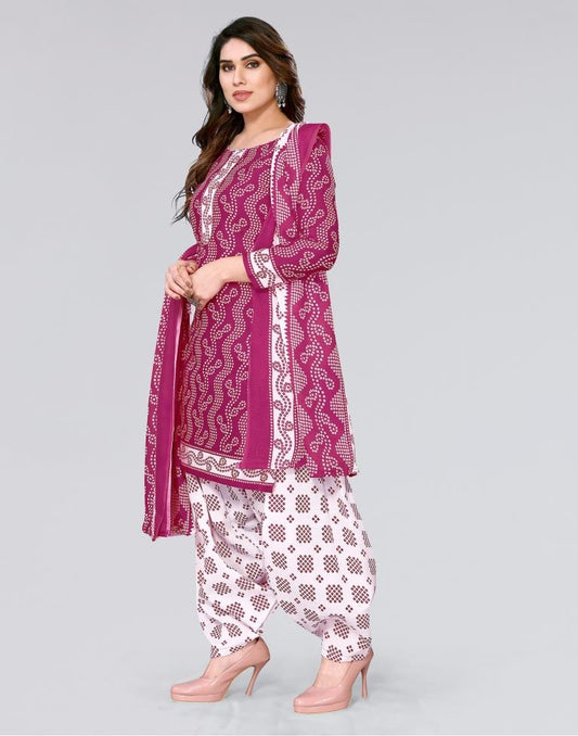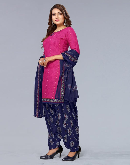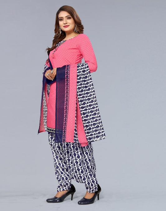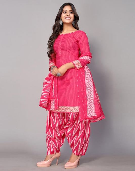 Pink Printed Cotton Unstitched Salwar Suit Material