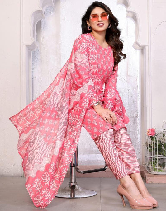 Regular price Rs. 799.00Regular priceUnit price / perRs. 0.00Sale price Rs. 799.00Pink Printed Kurta With Pant And Dupatta