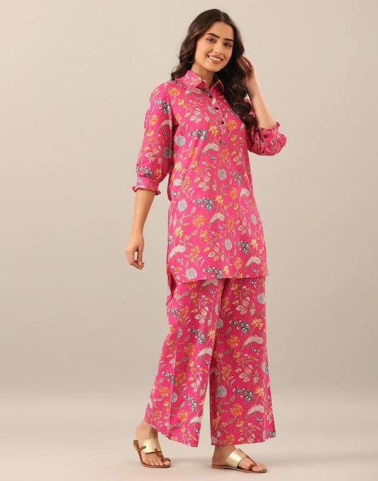 Regular price Rs. 899.00Regular priceUnit price / perRs. 0.00Sale price Rs. 899.00Pink Rayon Floral Printed Co-ords Set